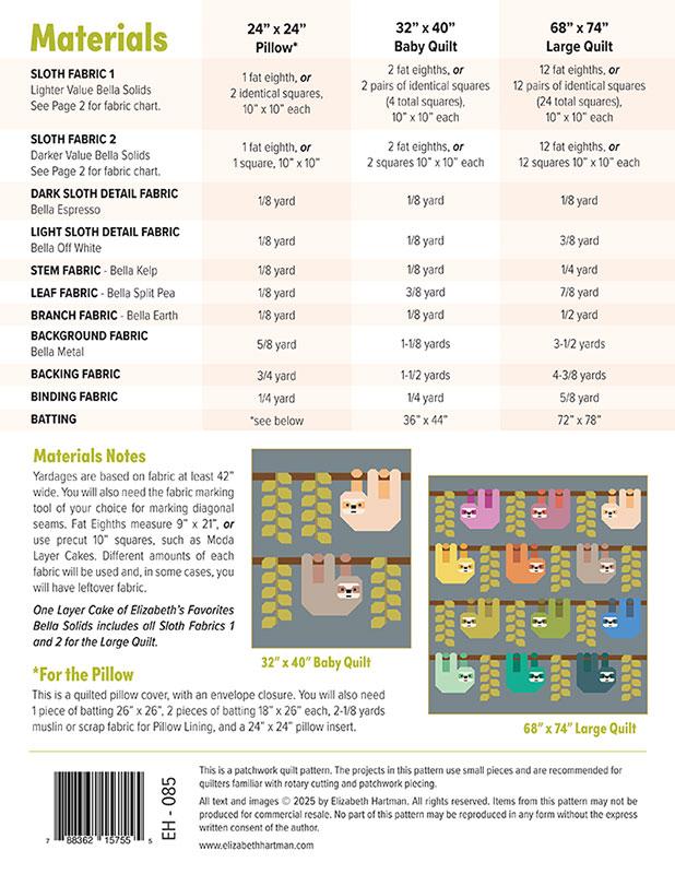A super cute sloth quilt in 2 sizes with a pillow cover pattern!