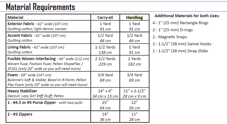 This bag is fully structured with many features! The pattern includes two sizes, the Carry-all size for traveling or the Handbag size for a day out shopping. It has large front and back pockets that close with magnetic snaps, and some curvy overlays to dress it up. The shape of this bag allows it to fit comfortably against the body and the handles make it easy to carry in the crook of your elbow, regardless of which size. Inside you will find two zipper pockets and a divided slip pocket, and a super snug lining that is sewn into all the edges for a clean finish.